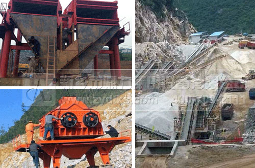 該生產線的配置主要有三大亮點,先,配置的兩臺PCZ1615錘式破碎機不僅起到了產量高的優勢,兩臺破碎機在使用時也可以起到物料加工整形的效果;另外,PLF制砂機工作性能穩定,維修方便,制砂率高,產品粒形成立方體,針片狀含量低,適合石料整形和生產機制砂,是目前內比較的細碎機設備;后,八臺篩子分別由兩臺兩臺的并在一起進行物料的篩分,共篩分出四種物料,這樣的設計篩分物料更干凈,效率更高。