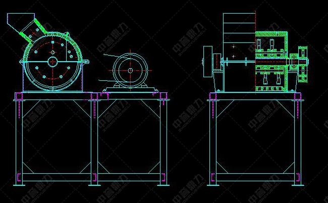 下圖為1000錘破地基圖紙,1000錘破轉子直徑和長度均為1米,設備結構簡單,每小時生產100多噸,出料粒形均勻,在35毫米以下,粒度可調,過粉量低。