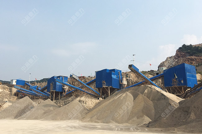 方案三:破碎環(huán)節(jié)選用顎破和圓錐破,可用來(lái)破碎高硬度物料,如果原料粒度在40mm以下,可以省去破碎環(huán)節(jié),直接用來(lái)制砂