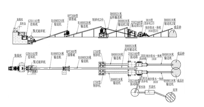 一套完整的時(shí)產(chǎn)150噸機(jī)制砂生產(chǎn)線(xiàn)不僅包括制砂環(huán)節(jié),還包括大塊物料的粗、細(xì)碎作業(yè),DLZSJ1238雙轉(zhuǎn)子制砂機(jī)和DLVSI1140立軸沖擊式制砂機(jī)都可用于機(jī)制砂生產(chǎn)線(xiàn),根據(jù)物料硬度大小合理設(shè)計(jì)加工工藝,生產(chǎn)高質(zhì)量機(jī)制砂。