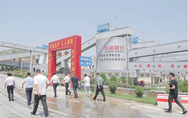 考察團先后參觀了中譽鼎力EPC承建的時產3000噸骨料生產線和衛輝市藍天環保材料有限公司“骨料+機制砂+干混砂漿+混凝土”四位一體項目,就環保生產、智能管理、密閉儲料、循環發展等話題進行了交流,并作出高度評價。