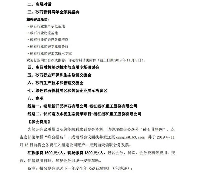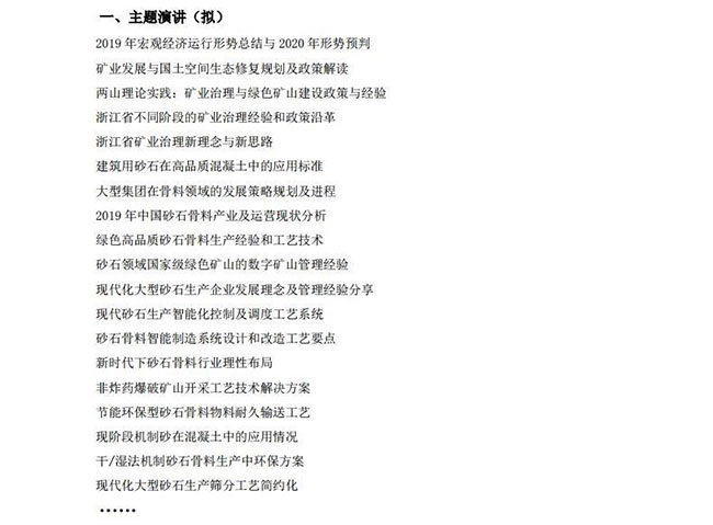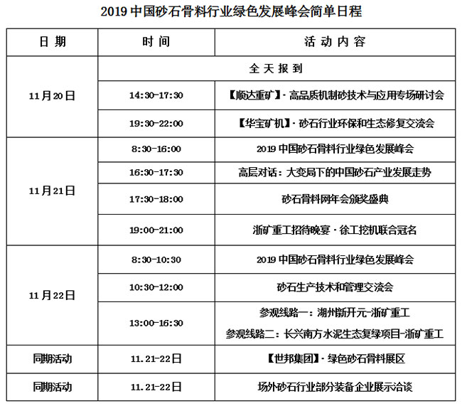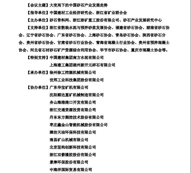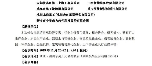 2019年11月20-22日,砂石骨料網攜手中建材工業(yè)經濟研究會砂石產業(yè)發(fā)展研究、浙江浙礦重工股份有限公司在湖州召開“2019年中砂石行業(yè)綠色發(fā)展峰會暨砂石骨料網年會”。