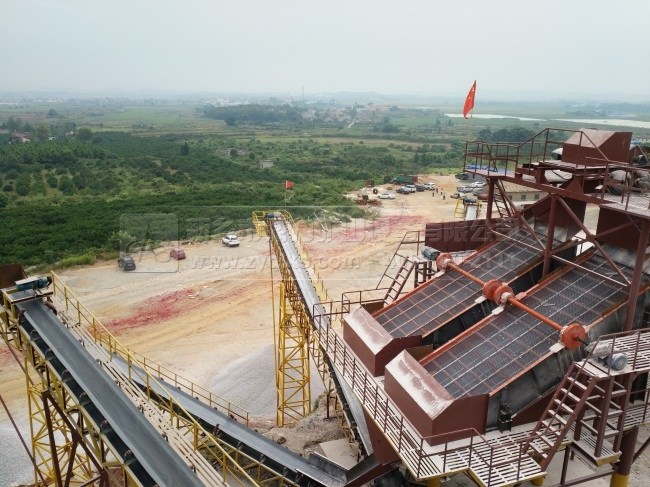 振動給料機(jī)+錘式破碎機(jī)+皮帶輸送機(jī)+圓振動篩=成品物料