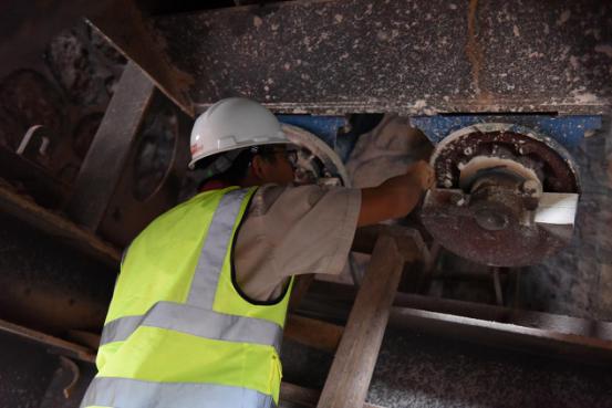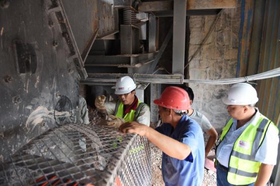 現(xiàn)場,鼎力安裝工程師、銷售經(jīng)理、售后服務(wù)經(jīng)理了解到該生產(chǎn)線的產(chǎn)量沒有達到設(shè)備時產(chǎn)量時,立即開始檢測設(shè)備、查找原因。經(jīng)過查看用戶的破碎原材料,發(fā)現(xiàn)原材料里含有硅巖,加劇了破碎機錘頭磨損程度,進而影響產(chǎn)量。建議在破碎前將硅巖層剝離掉,避免錘頭磨損嚴(yán)重的情況再次出現(xiàn)。