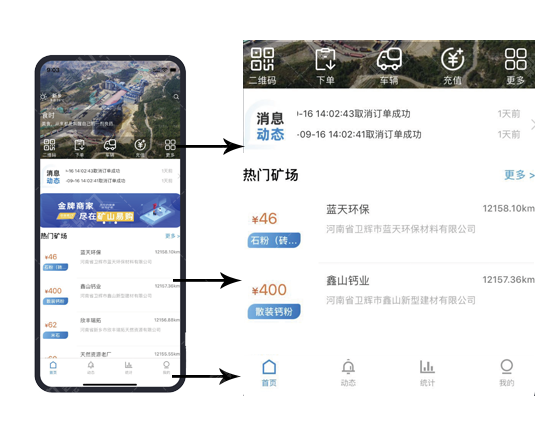 中譽鼎力礦山易購APP,可以讓買方(需求方、司機)通過礦山易購APP(也可通過微信公眾號、小程序下單),實現一鍵快速下單、直接在線上訂購石料,下單成功后的訂單信息會發送到賣方易購后臺管理中,賣方收到訂單信息后即可合理安排生產計劃。