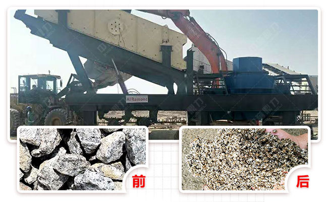 破碎方法:移動(dòng)式HIV沖擊式制砂機(jī)+圓振動(dòng)篩+輸送帶